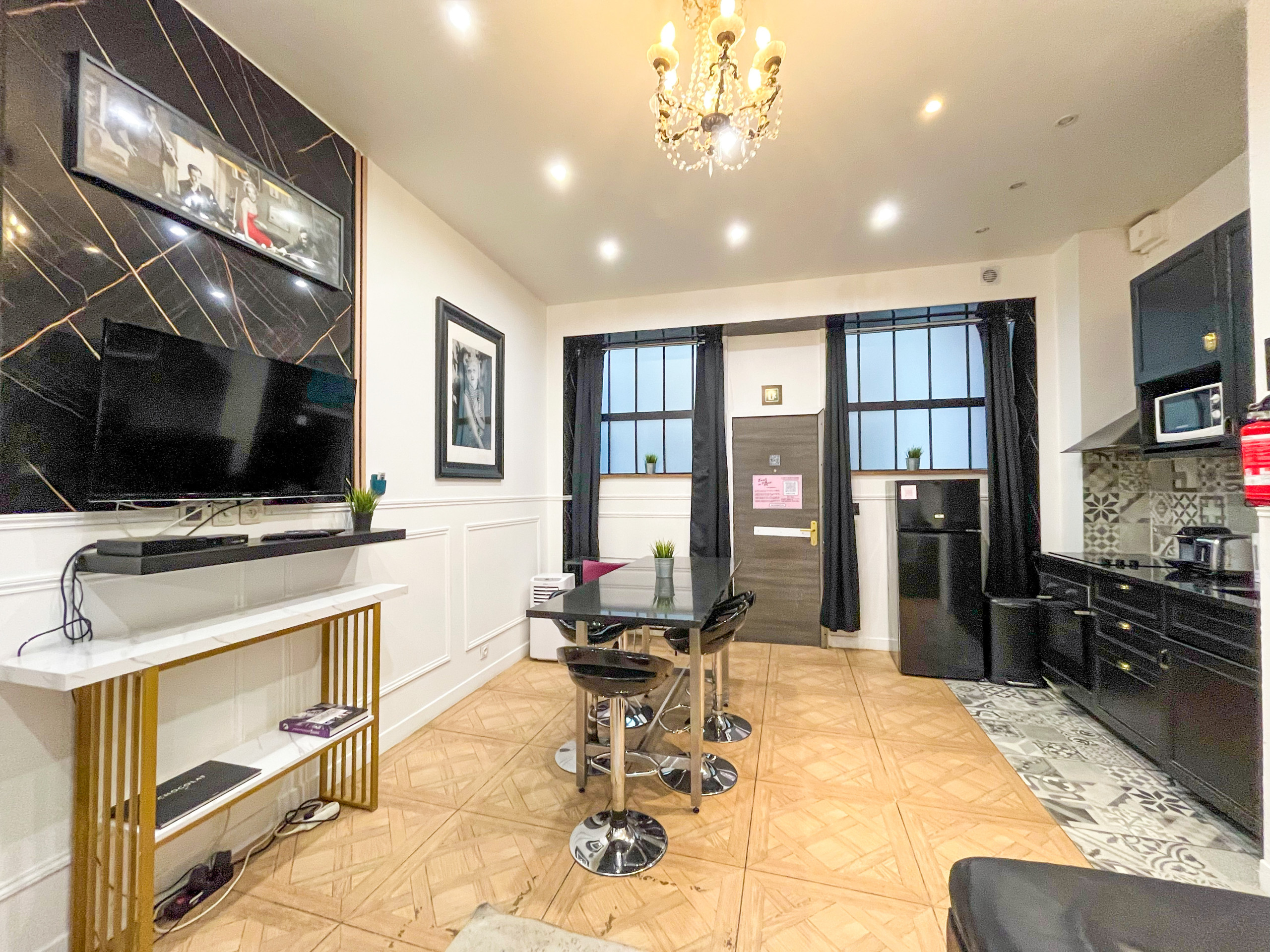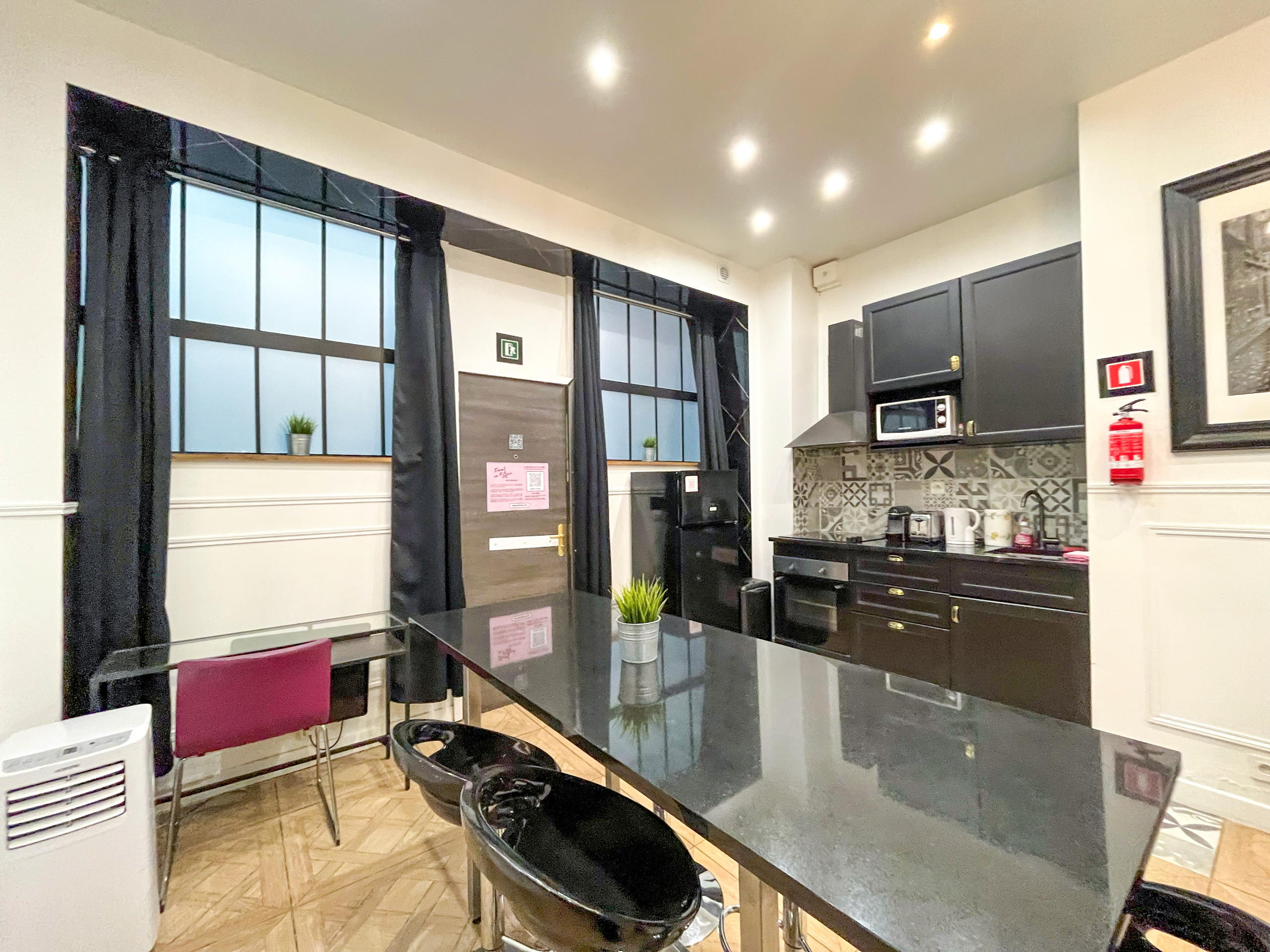 Poupou Pi Dou... Spingi la porta dell'atelier ed entra nel mondo di strass della diva, sali uno dopo l'altro i gradini dell'elegante chiocciola e goditi, alla luce del lampadario d'altri tempi, la vista sulla bella cucina americana e sul tavolo degli ospiti. Al piano superiore, due camere con tende rosse come il gloss perfetto dell'icona daranno al tuo soggiorno parigino un tocco So Hollywood.