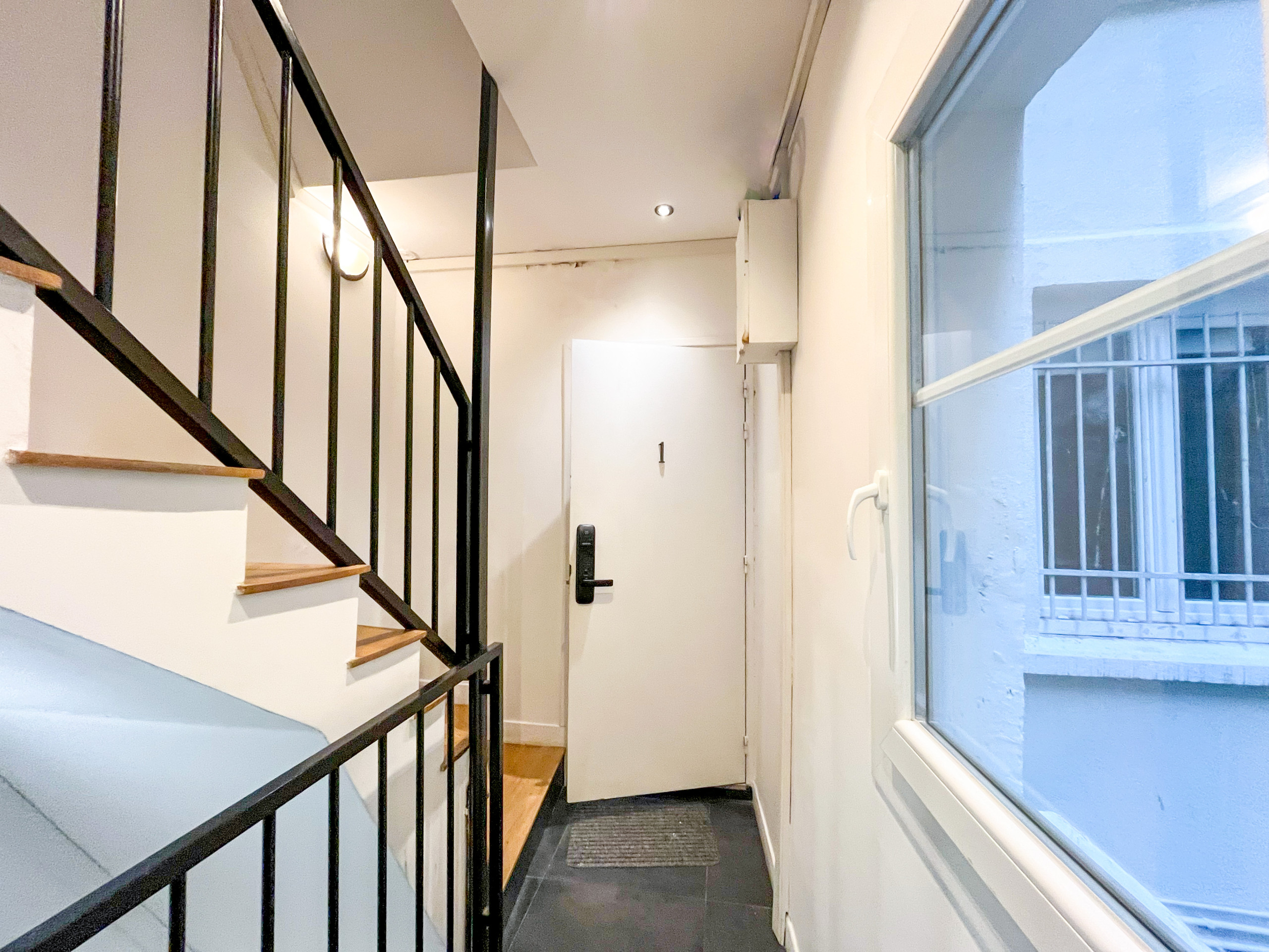 Notre appartement donne sur une cour intérieure typiquement parisienne avec un calme absolu.