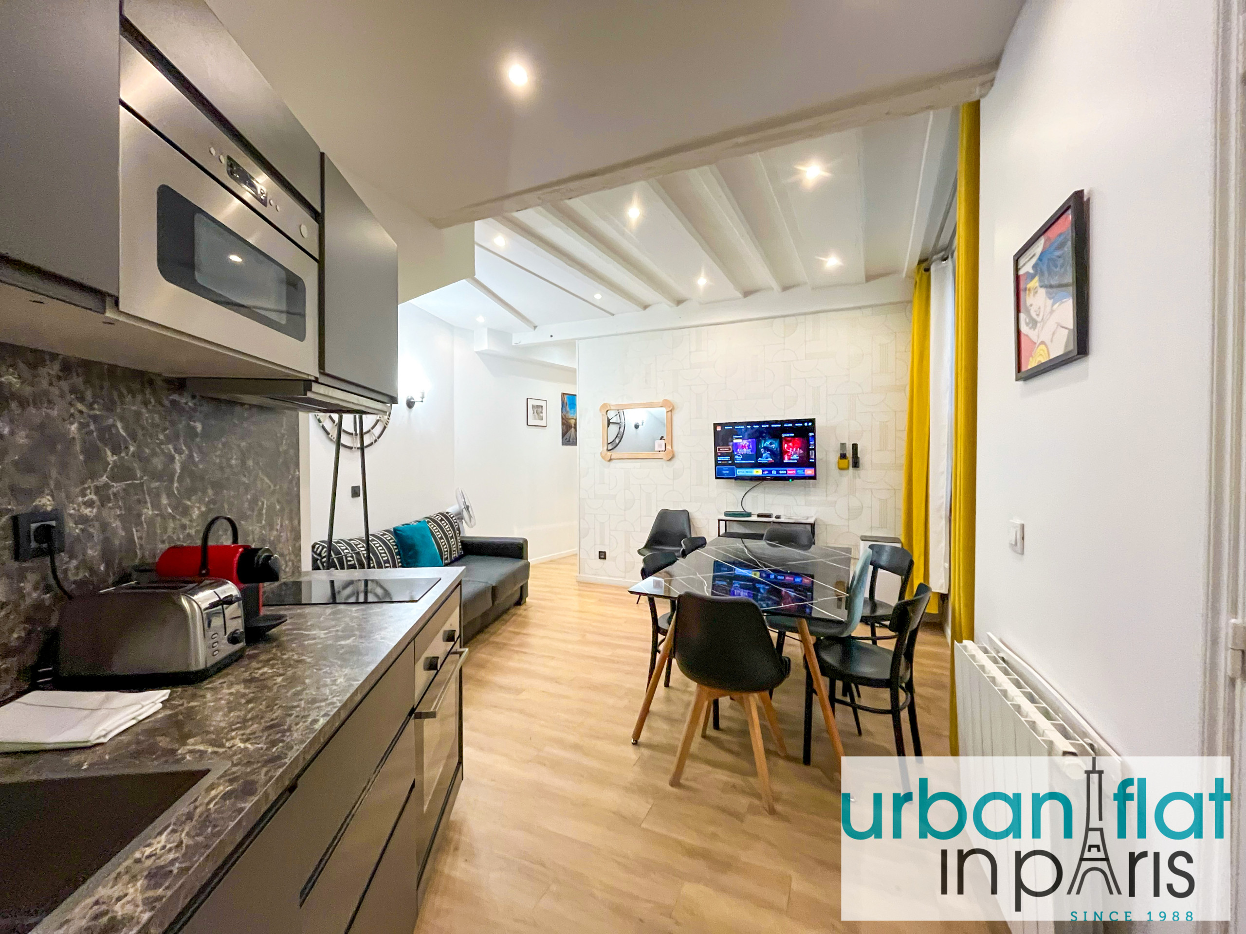 O apartamento em Paris tem 3 quarto(s) e capacidade para 10 pessoa(s). Alojamento de 80 m² mobilado com gosto e totalmente equipado. Localizado numa zona ideal para famílias zone no centro urbano.Dispõe de ferro de engomar, acesso internet (wifi), secador de cabelo, ginásio, aquecimento com radiadores eléctricos, ar-condicionado, Televisão.A kitchenette, está equipada com frigorífico, microondas, forno, congelador, louça/talheres, máquina de café, torradeira e jarro eléctrico.