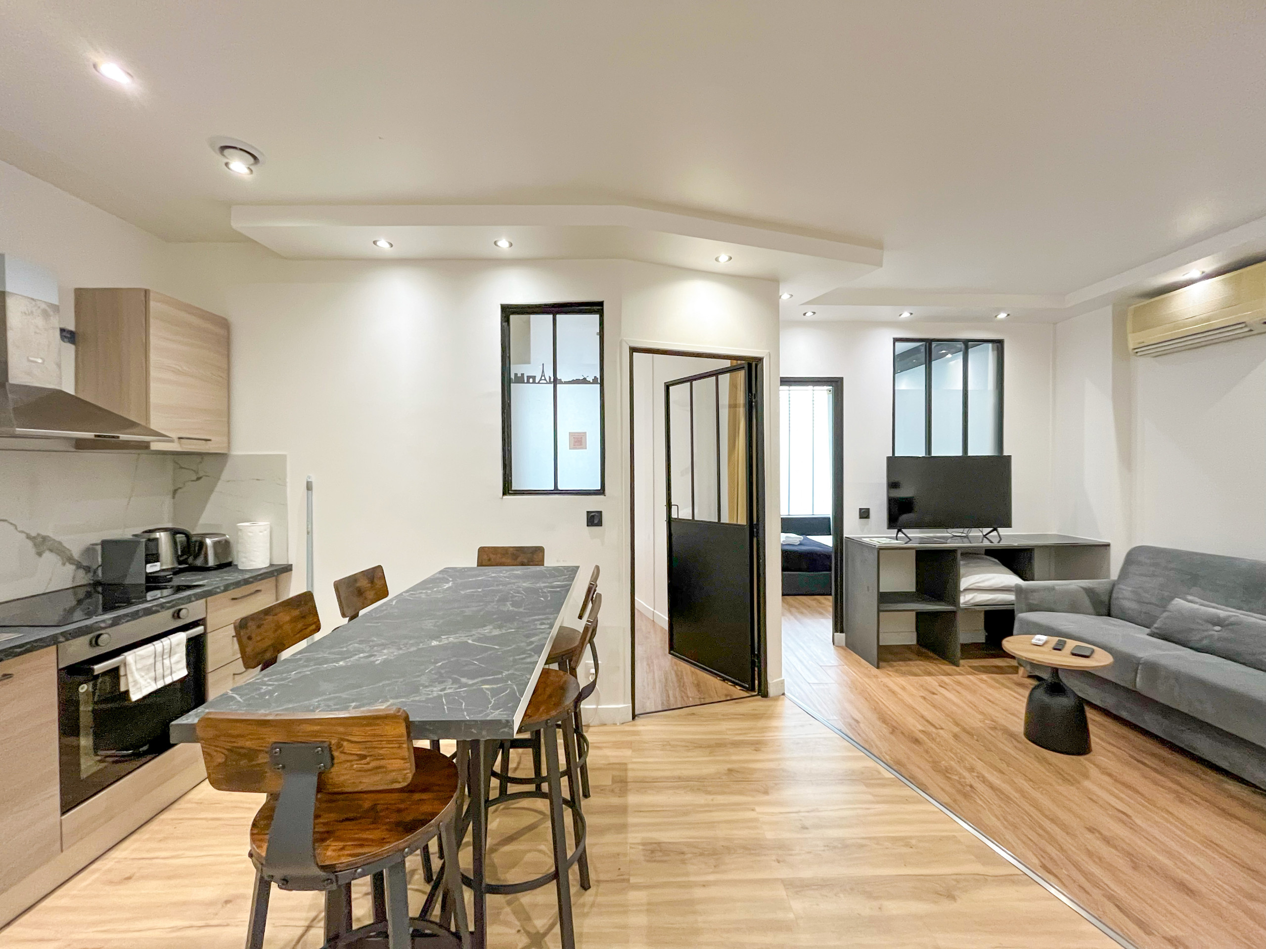 The apartment in Paris has 2 bedrooms and has capacity for 6 people.